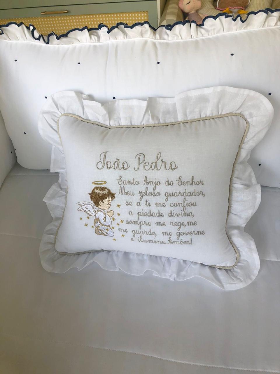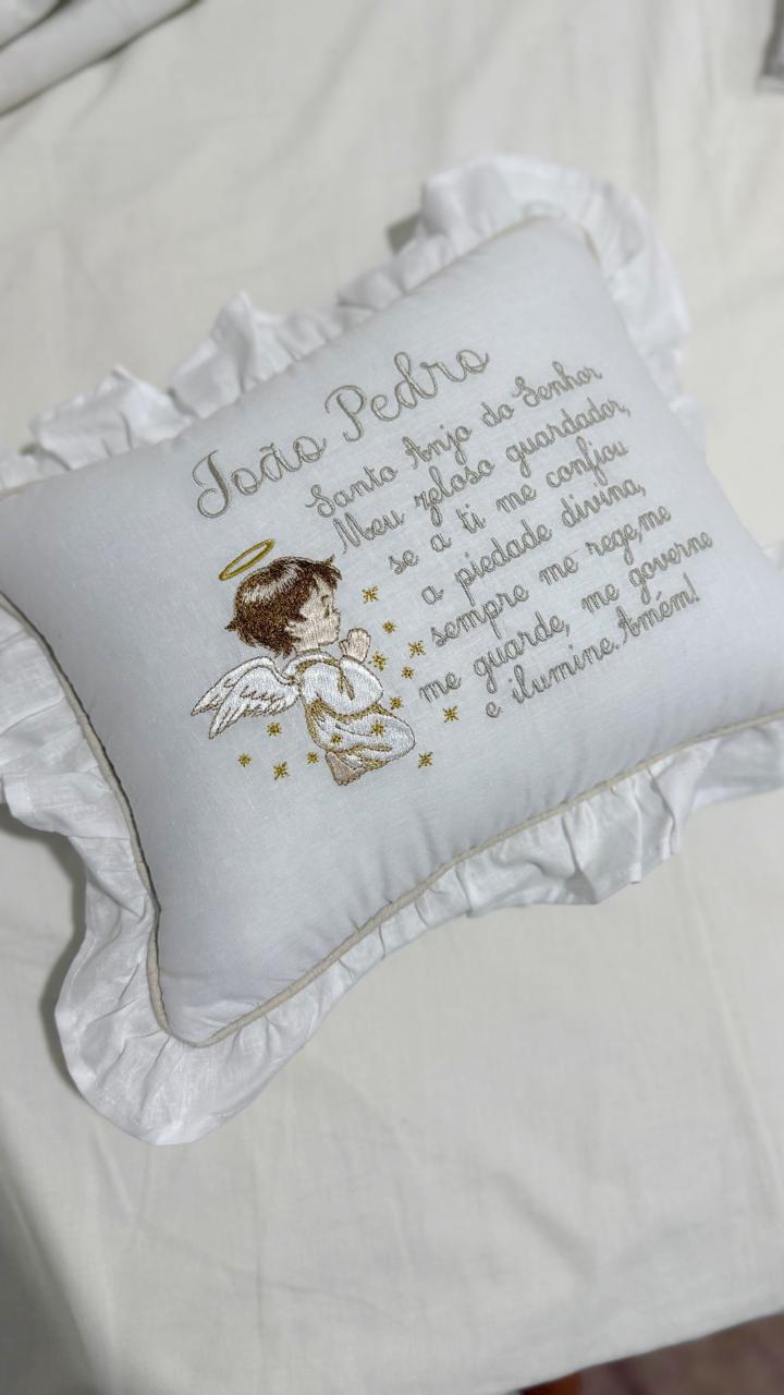 O nome do bebê pode ser enviado via WhatsApp para personalizar a almofada.