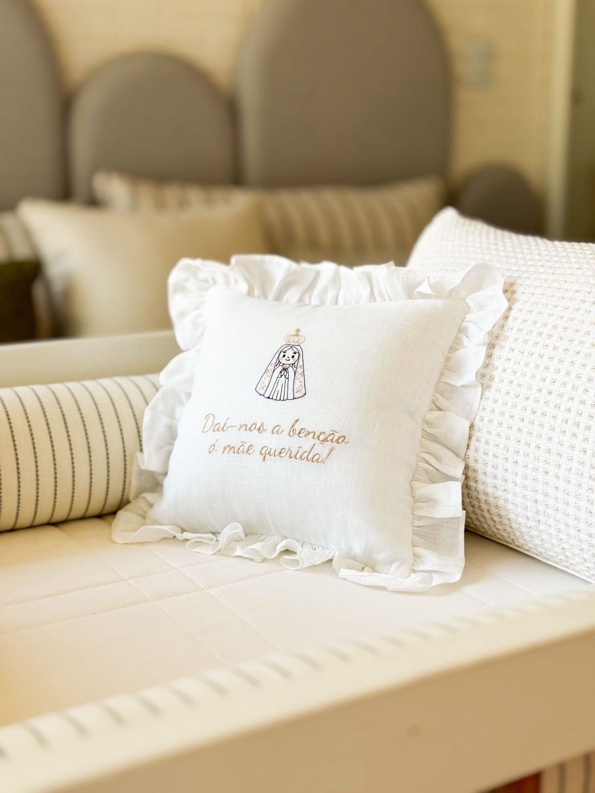 O nome do bebê pode ser enviado via WhatsApp para personalizar a almofada.