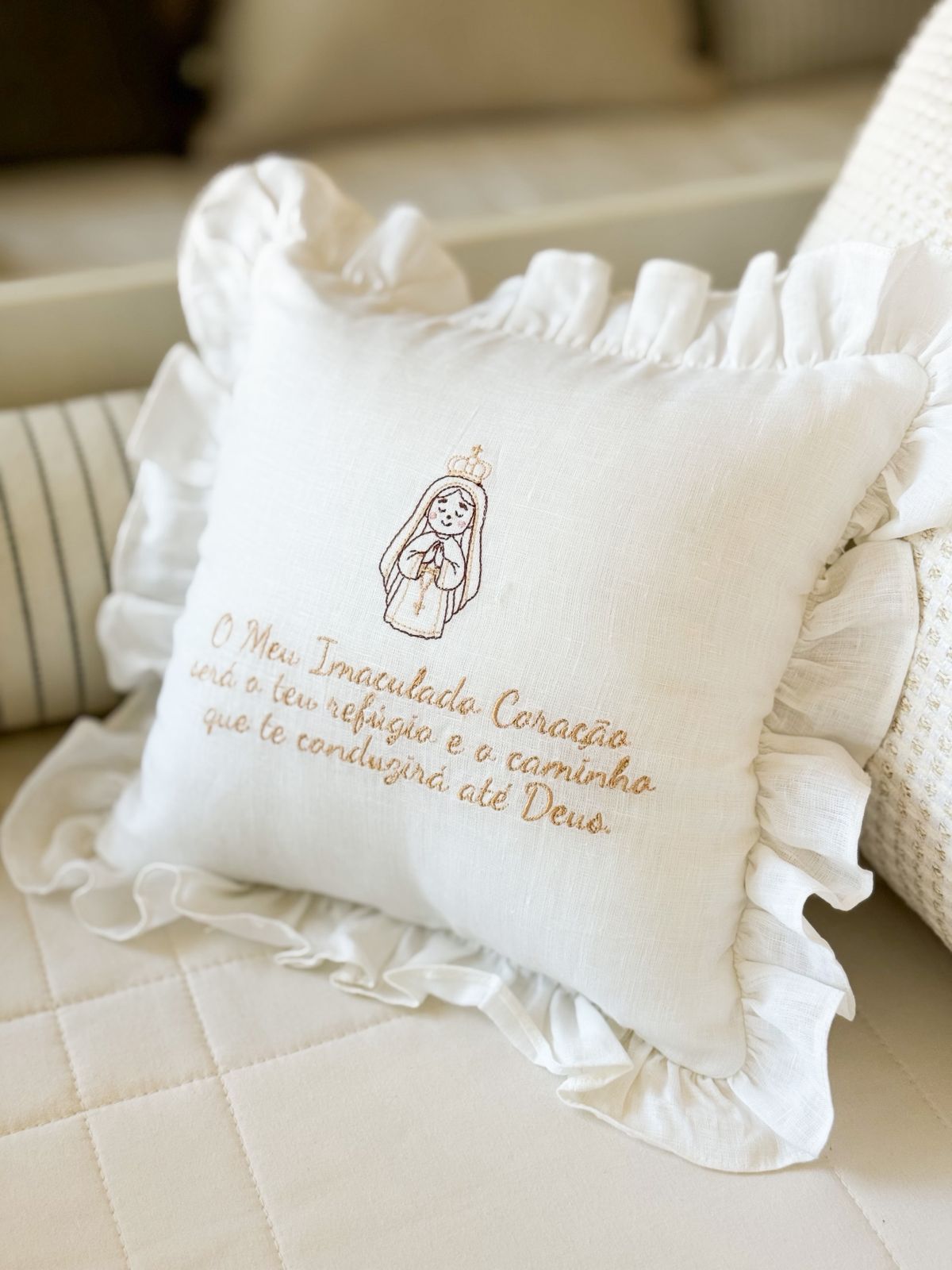 O nome do bebê pode ser enviado via WhatsApp para personalizar a almofada.