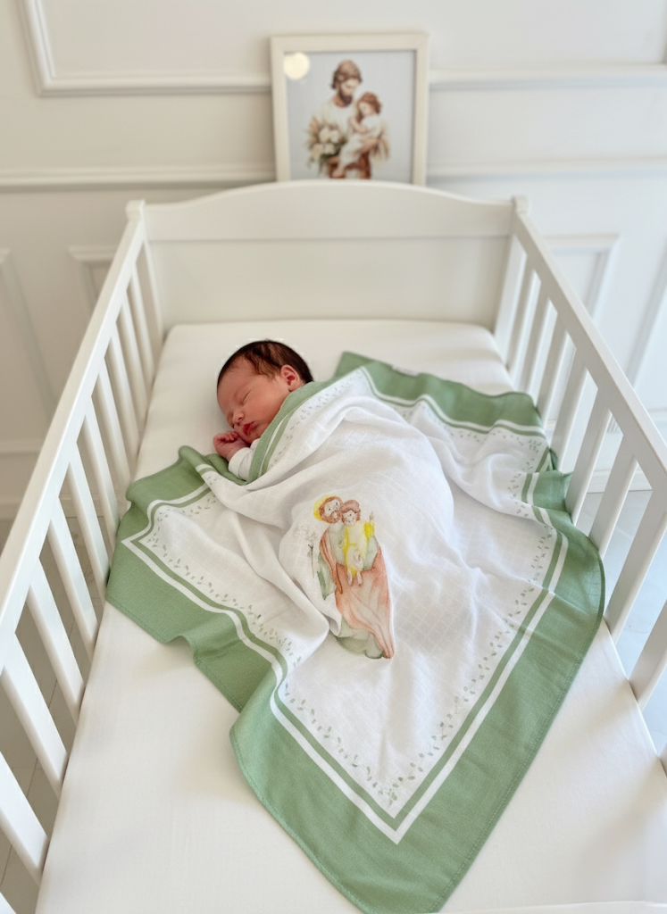 Lindo para vários momentos do bebê: nosso carré com estampa delicada de São José 🤍