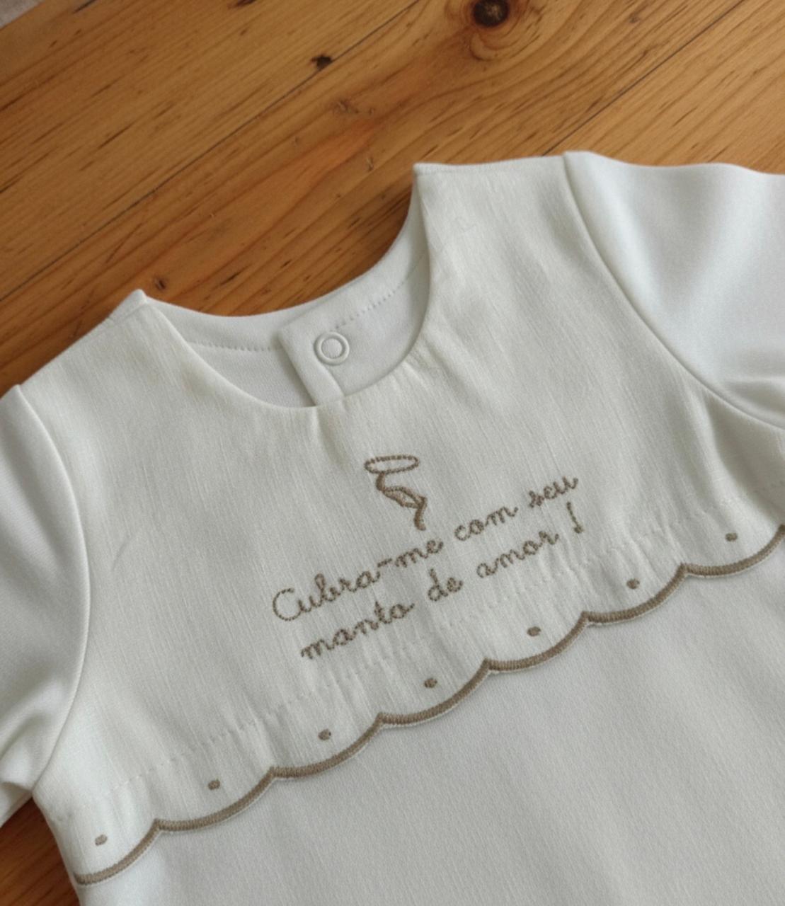 Macacão com modelagem Comfy, 100% algodão e bordado delicado.