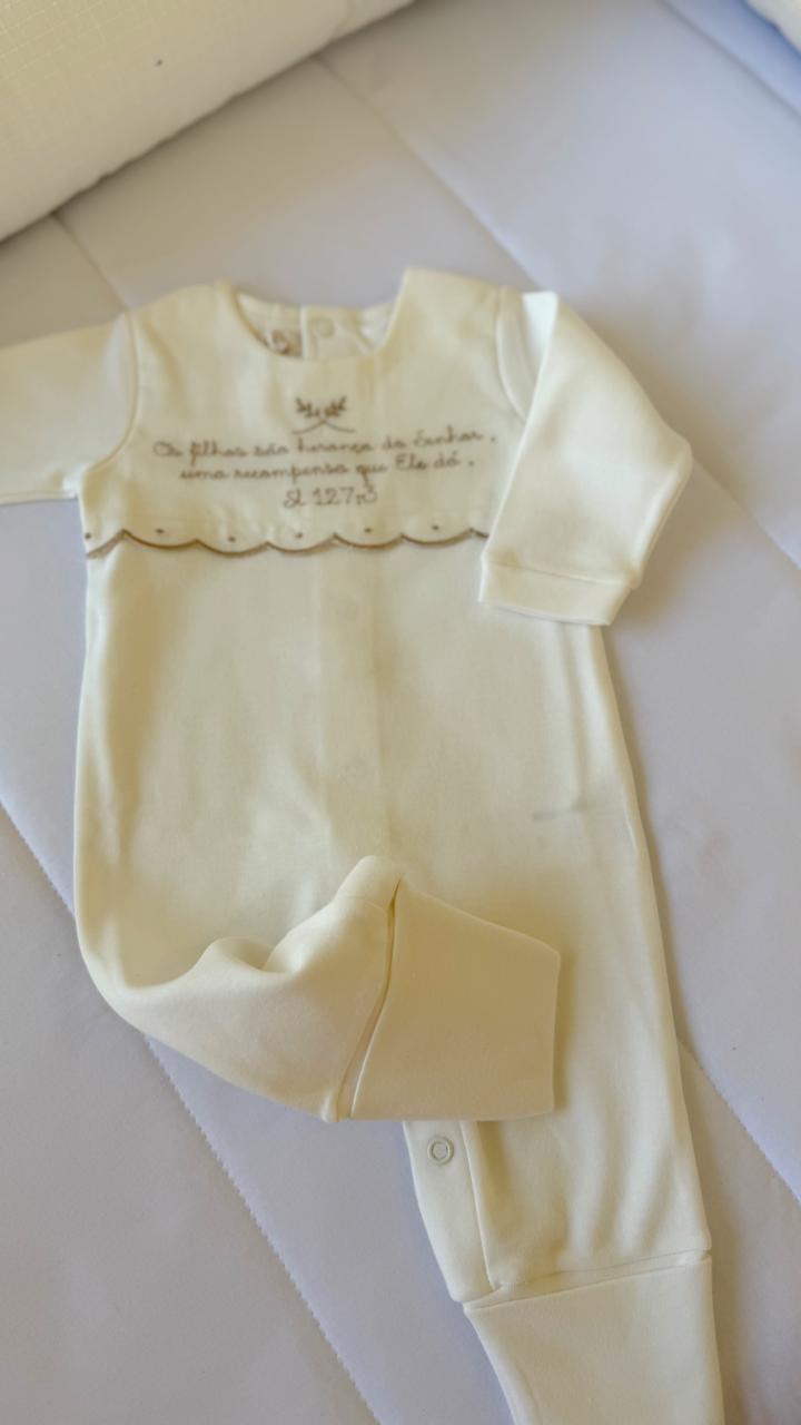 Macacão com modelagem Comfy, 100% algodão e bordado delicado.