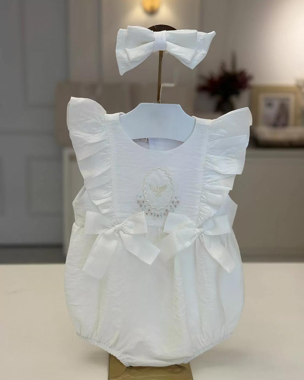Macacão com modelagem Comfy, 100% algodão e bordado delicado.