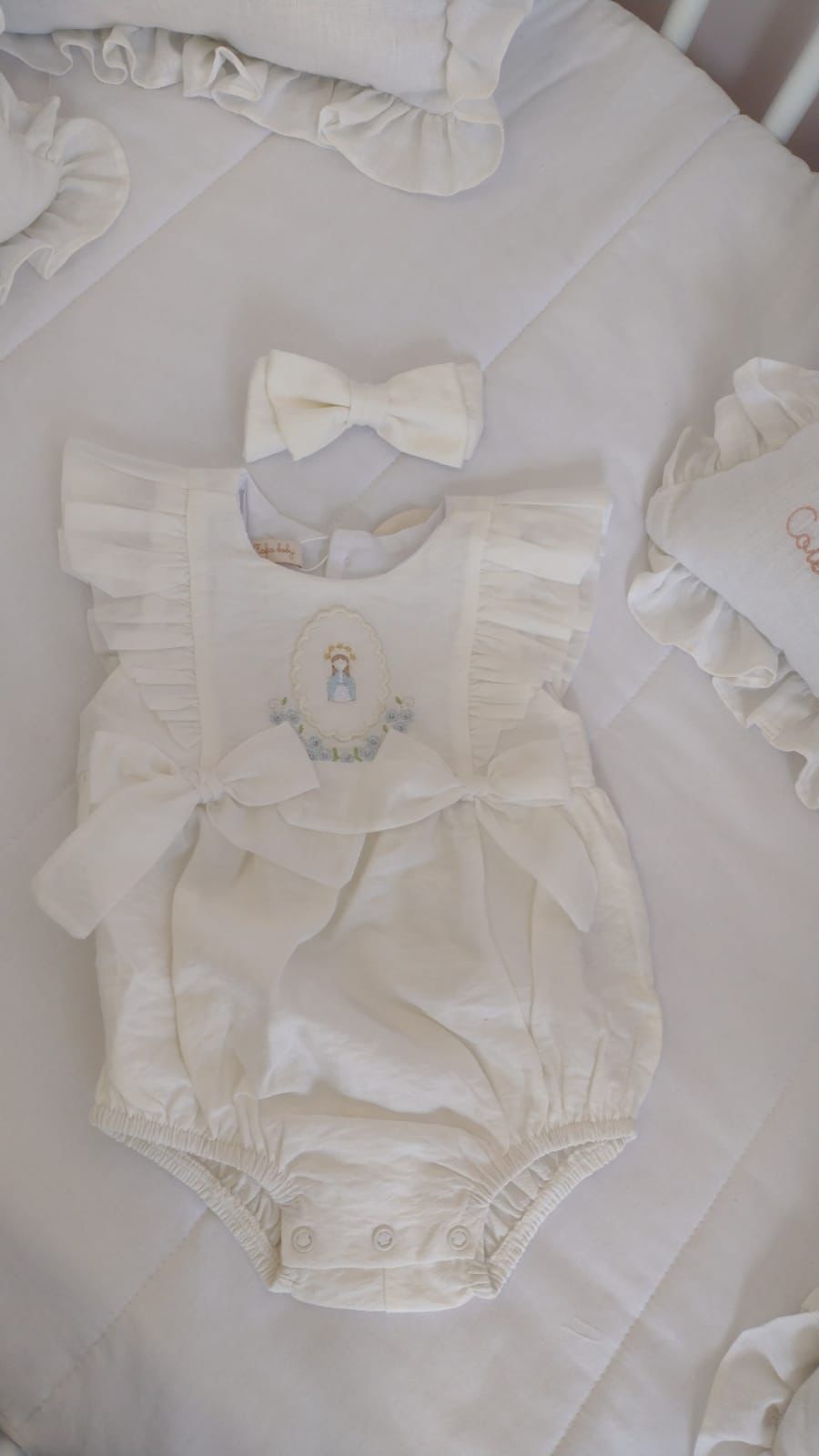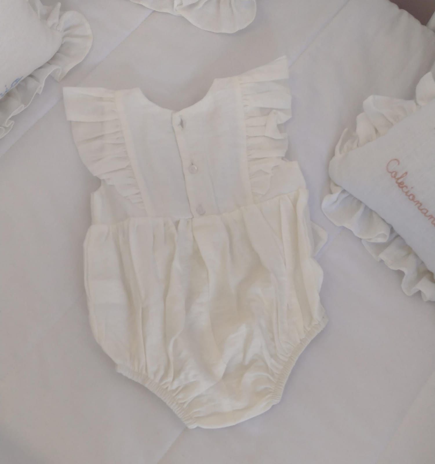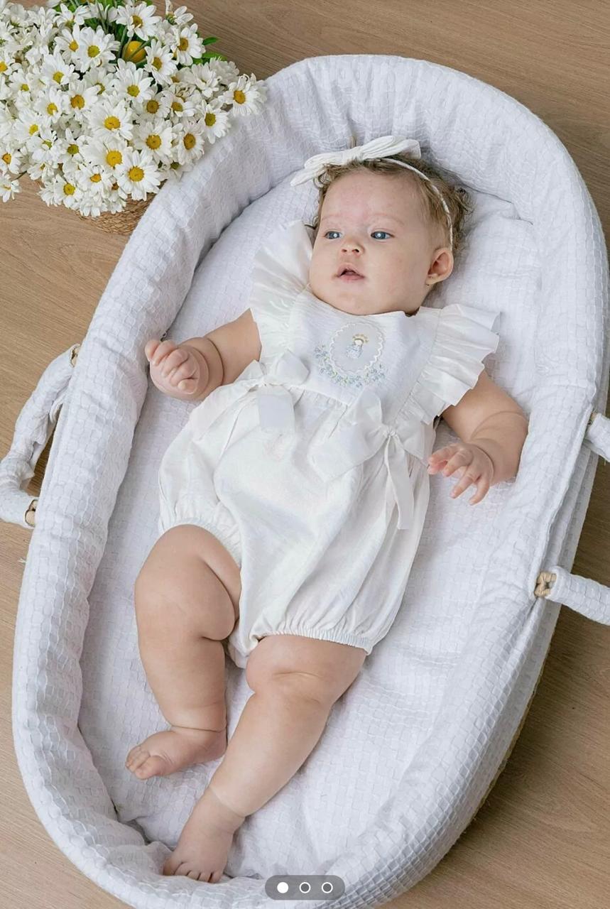 Macacão com modelagem Comfy, 100% algodão e bordado delicado.