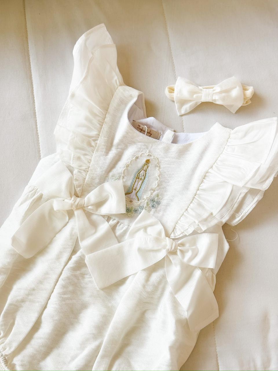 Macacão com modelagem Comfy, 100% algodão e bordado delicado.