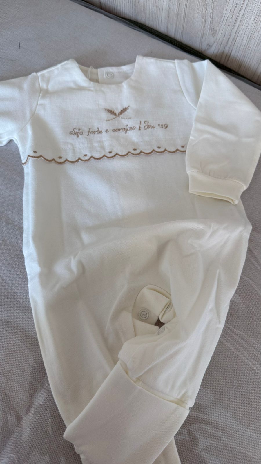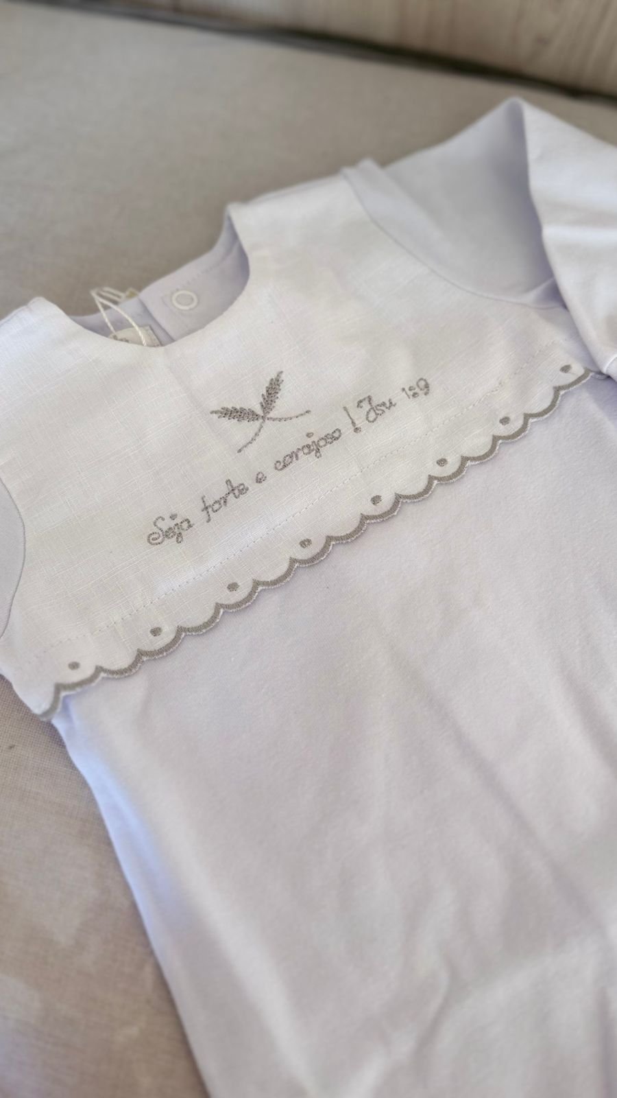 Macacão com modelagem Comfy, 100% algodão e bordado delicado.